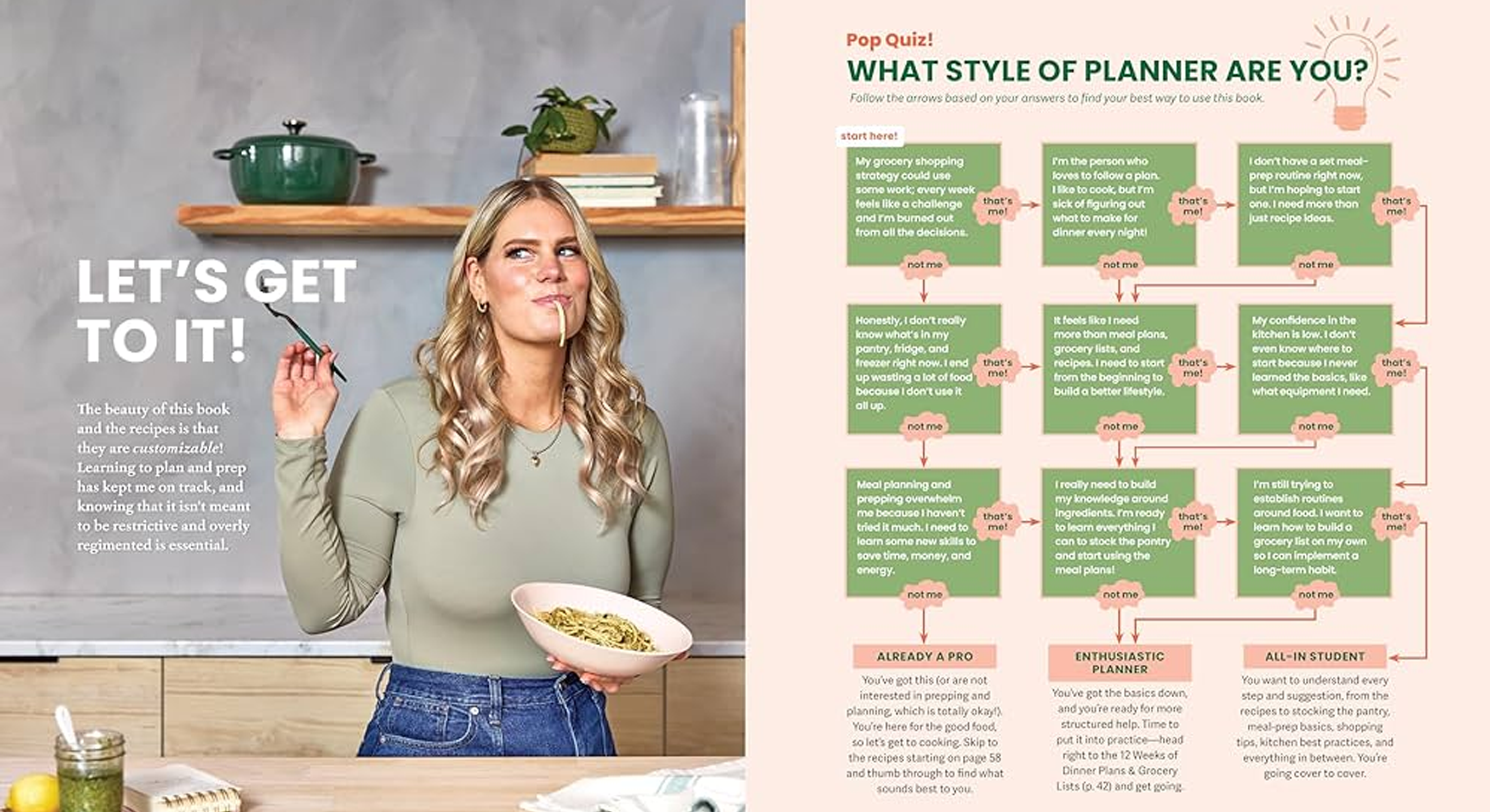 Order Don’t Think About Dinner and whip up the Hidden Veggie Spaghetti with Crispy Kale and Sausage on page 273 (we made it with rice pasta), or the Creamy Spinach Chicken on page 196.