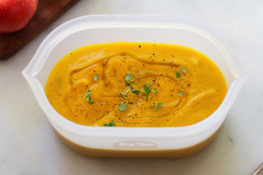 Roasted butternut squash and sweet apples blend into a smooth, fall-ready soup with warm turmeric and a drizzle of olive oil. Pure comfort in a bowl.