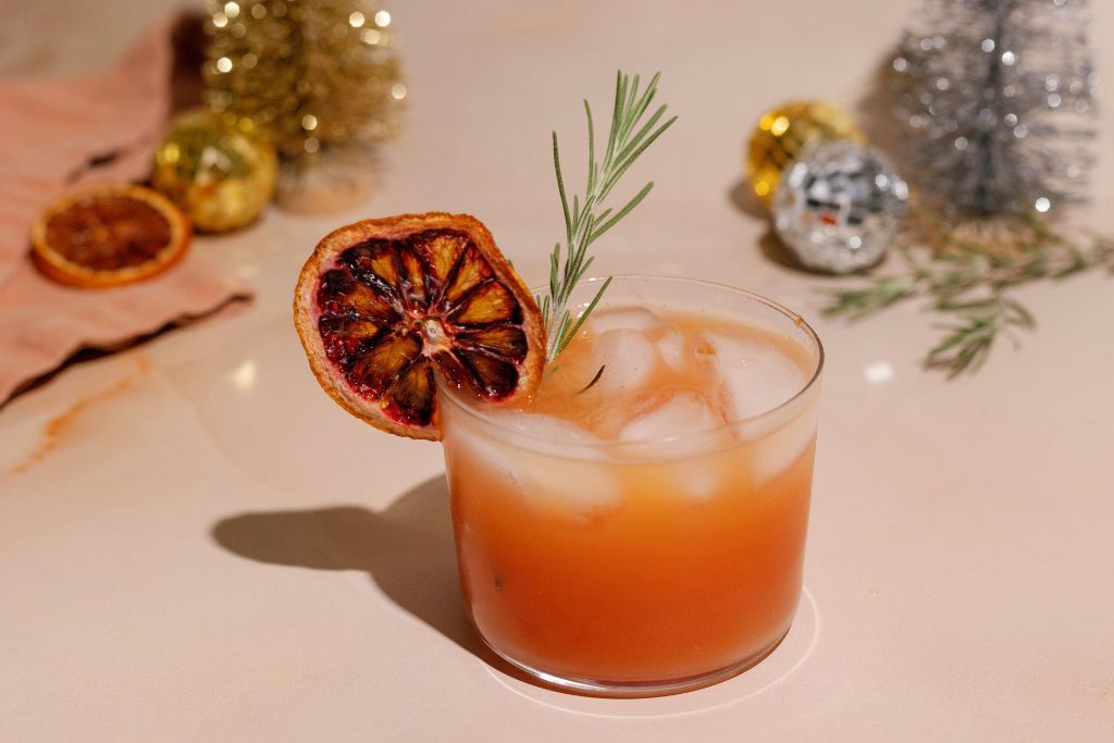 • GARNISH with a dehydrated orange slice (optional) and sprig of rosemary to serve.