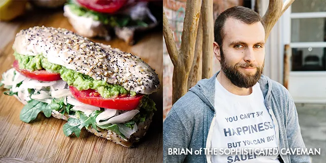 SLICE each chicken breast in half, width-wise. Slather each side with mashed avocado, then load it up with arugula, tomato, and sauerkraut. Flip the other half back on top. Enjoy!